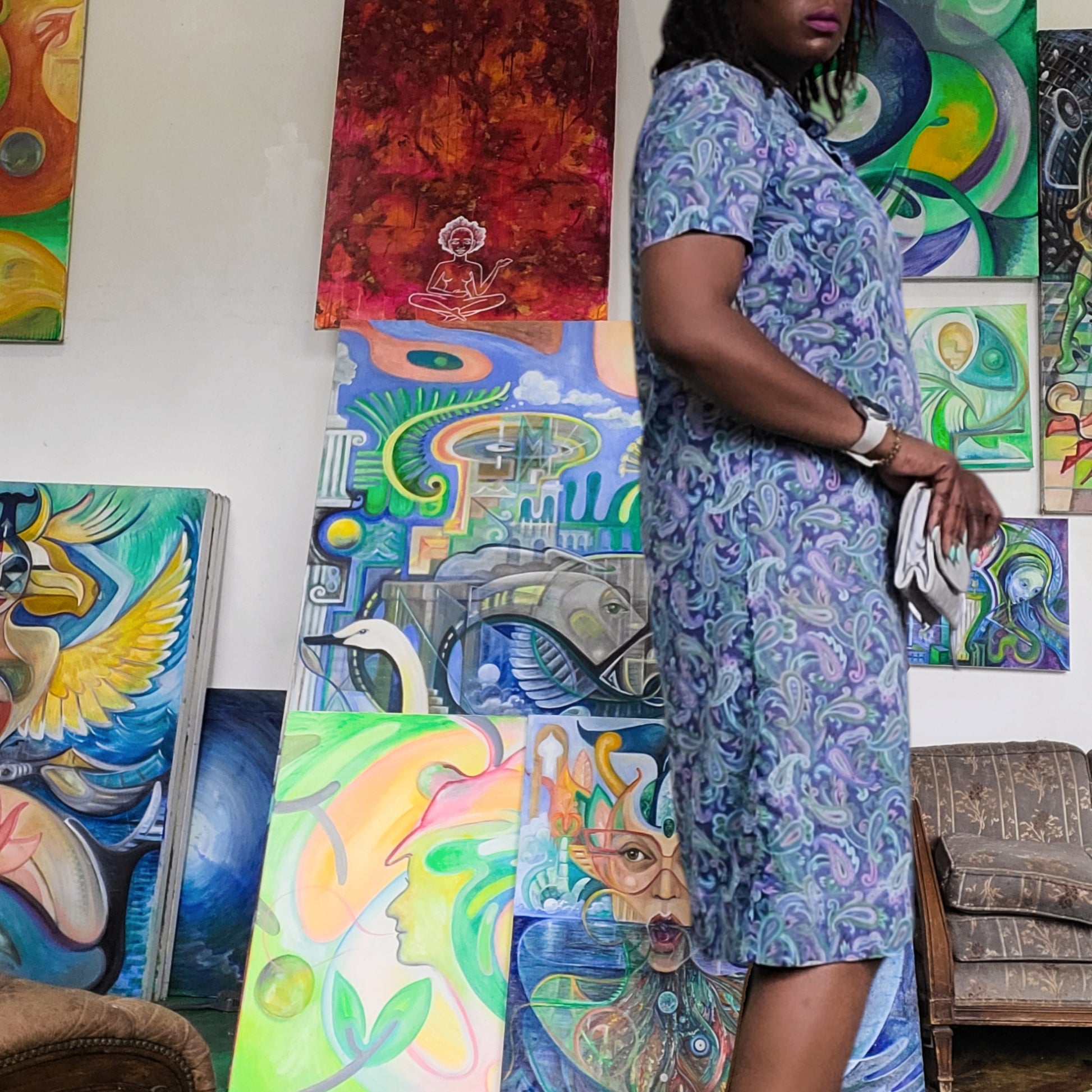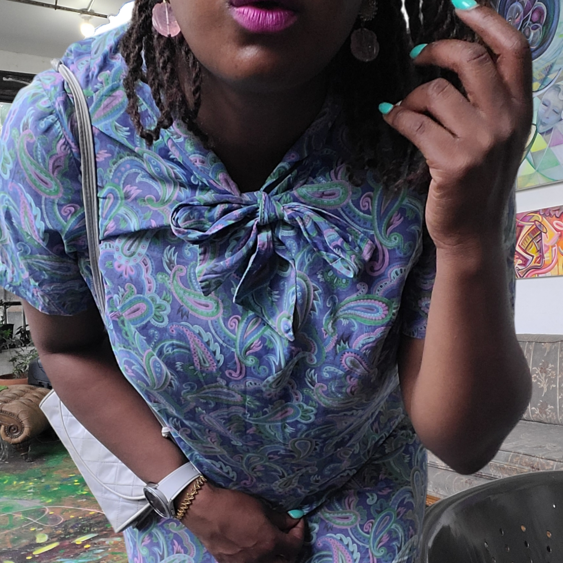 This vintage cotton voile house dress from the 1950's is a playful, quirky addition to any wardrobe. With its vibrant purple paisley print and lightweight fabric, it's perfect for a casual day out or a lazy day at home. Embrace retro style and comfort with this unique piece! A must have for a true vintage enthusiast or collector!