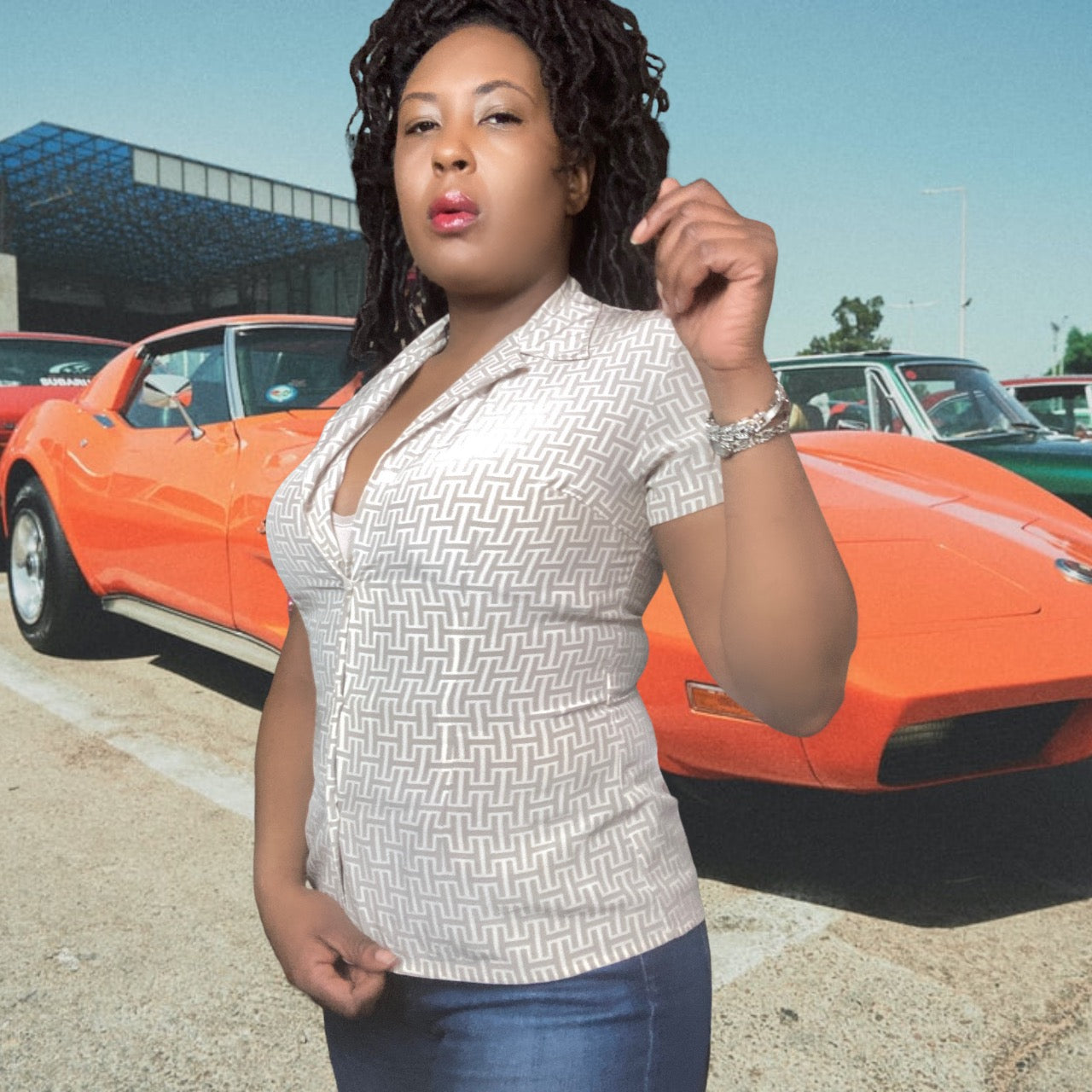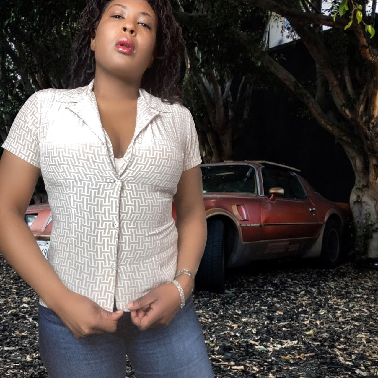 You'll be feeling groovy in this 70s Halston-inspired blouse. The tan and bone print is both sophisticated and playful, and the silk fabric is luxuriously soft. Whether you're dressing up or dressing down, this blouse is a must-have addition to your wardrobe.