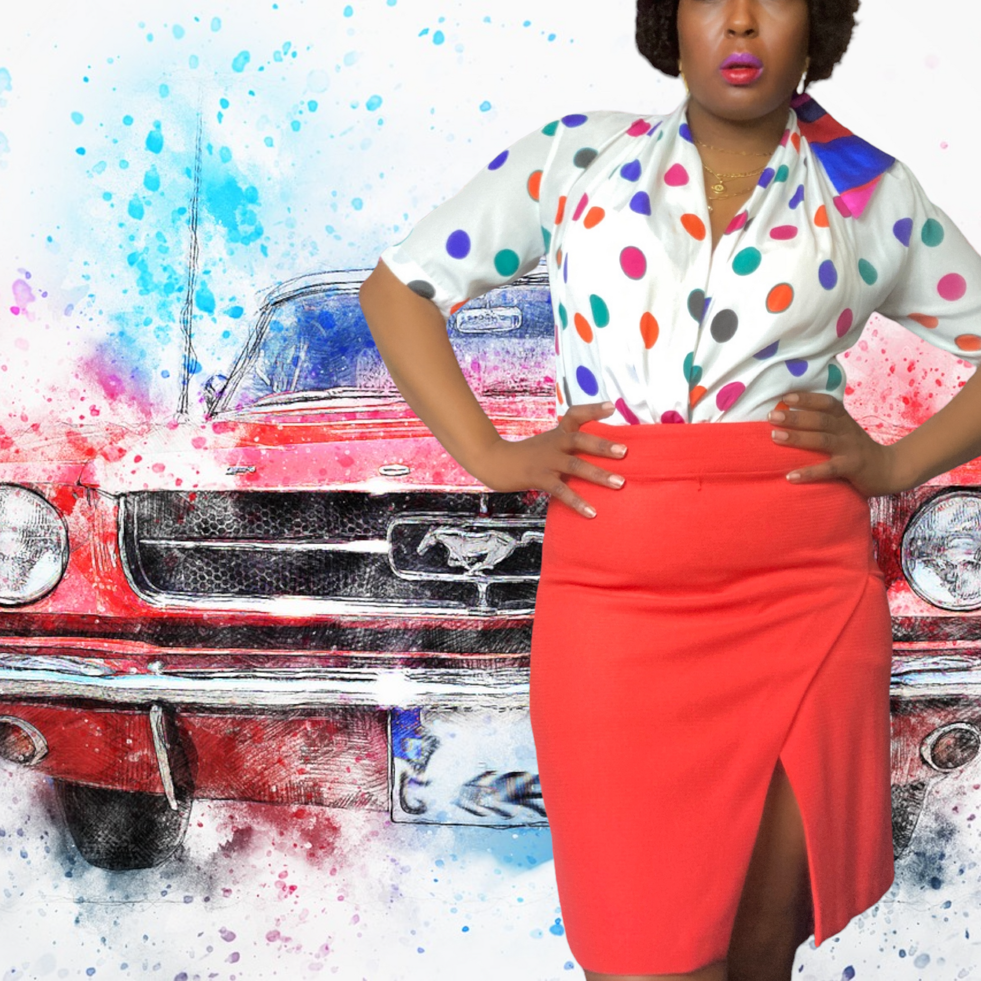 Super fun print polka dot blouse, with cowl drape wrap button closure. Fabric buttons. In excellent vintage condition. Has some make up stains from photo shoot.