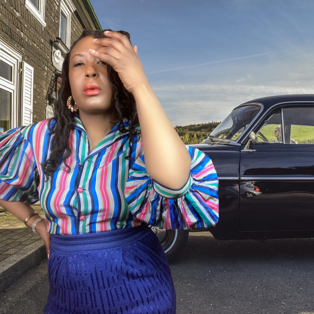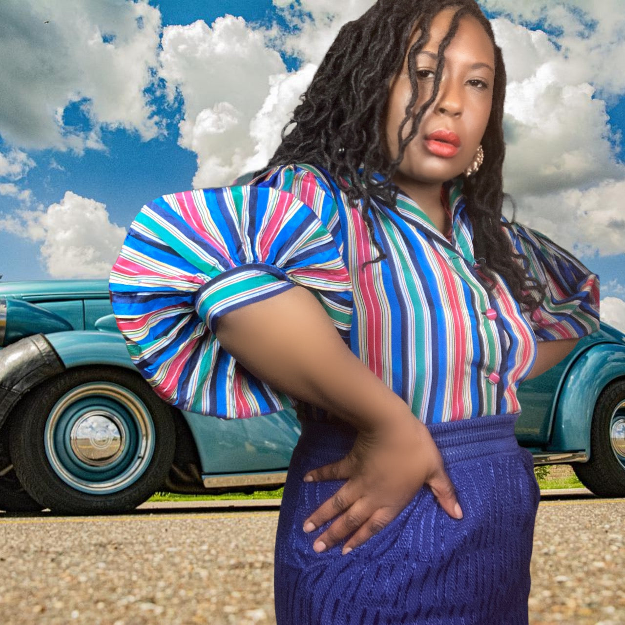 Looking for something unique and special? Check out this 50's Vintage Stripe Blouse! This fun and stylish top is made from a striped taffeta fabric, and features dropped shoulders and bishop sleeves. It's perfect for adding a touch of whimsy to your wardrobe. Whether you're dressing up for a party or just want to stand out from the crowd, this blouse is sure to turn heads.