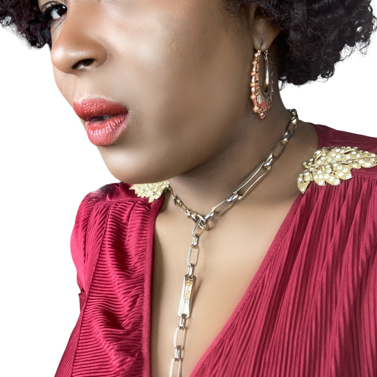 As a result, Smaltz got to know the designer very well, and she gifted this rare gold chain belt to her as a sign of their friendship. This piece is from Karan's early days as a designer, when she was first starting to make a name for herself in the fashion world.