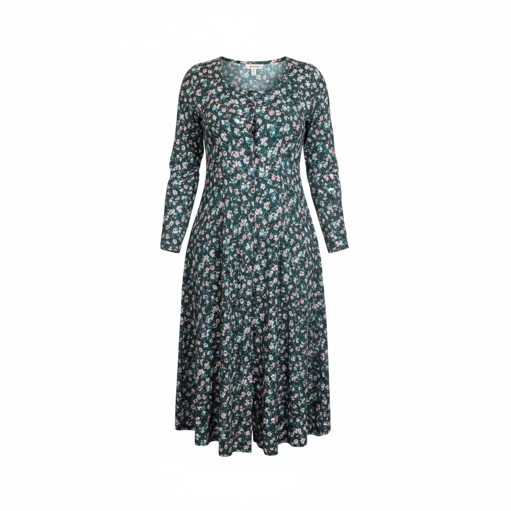 Lose yourself in the enchanting charm of this 90s Vintage Maggie Lawrence Collection Maxi Dress. Delicately fashioned from a blend of cotton and polyester. This captivating garment showcases a square neckline that radiates an air of timeless elegance. Adorned with a resplendent dark floral motif, this dress captures the essence of natural beauty, transcending eras effortlessly. The refined button-up design adds an element of grace to the flowing silhouette, making it a lavish choice for any occasion. Embrace a sense of grandeur and indulge in the luxury of this stunning maxi dress.