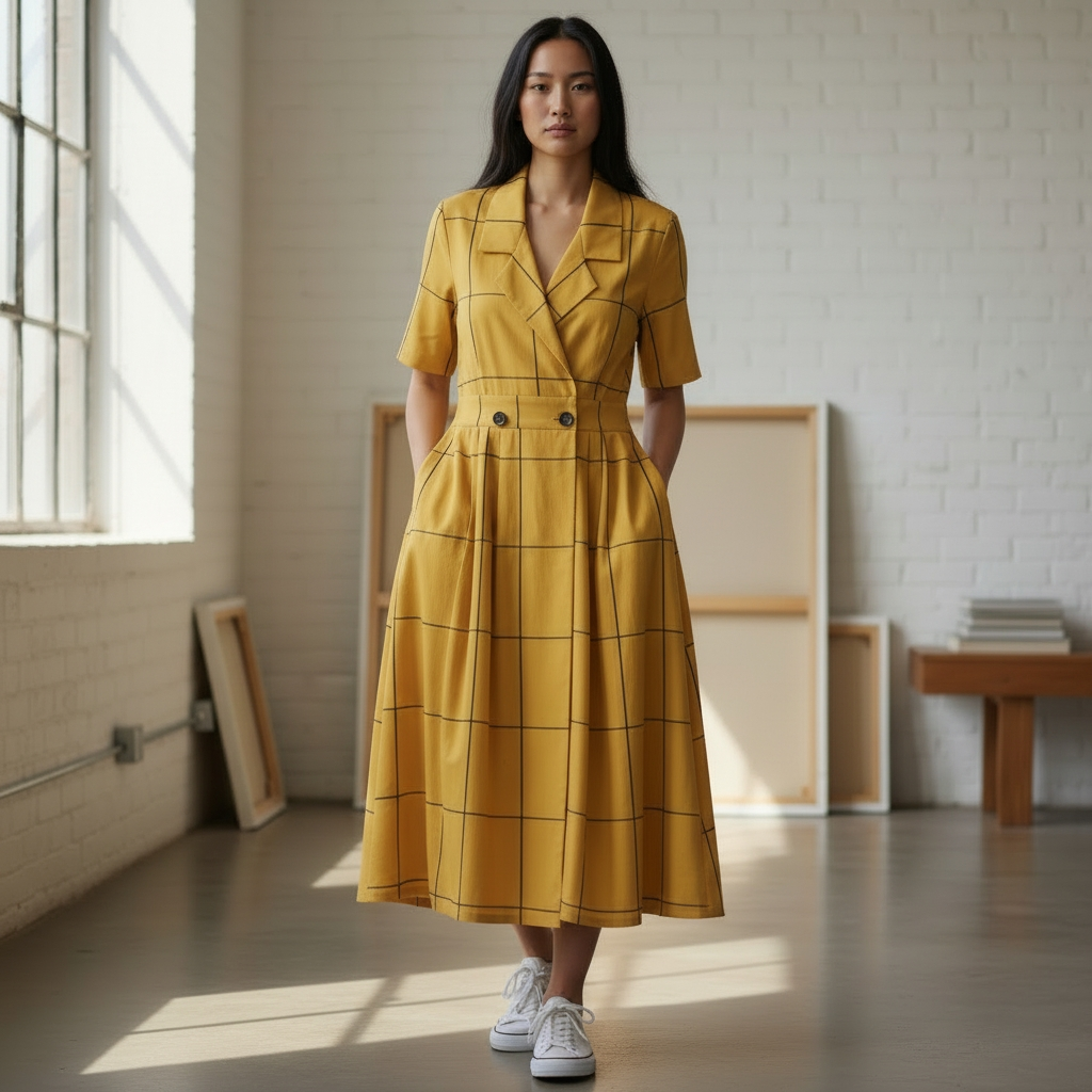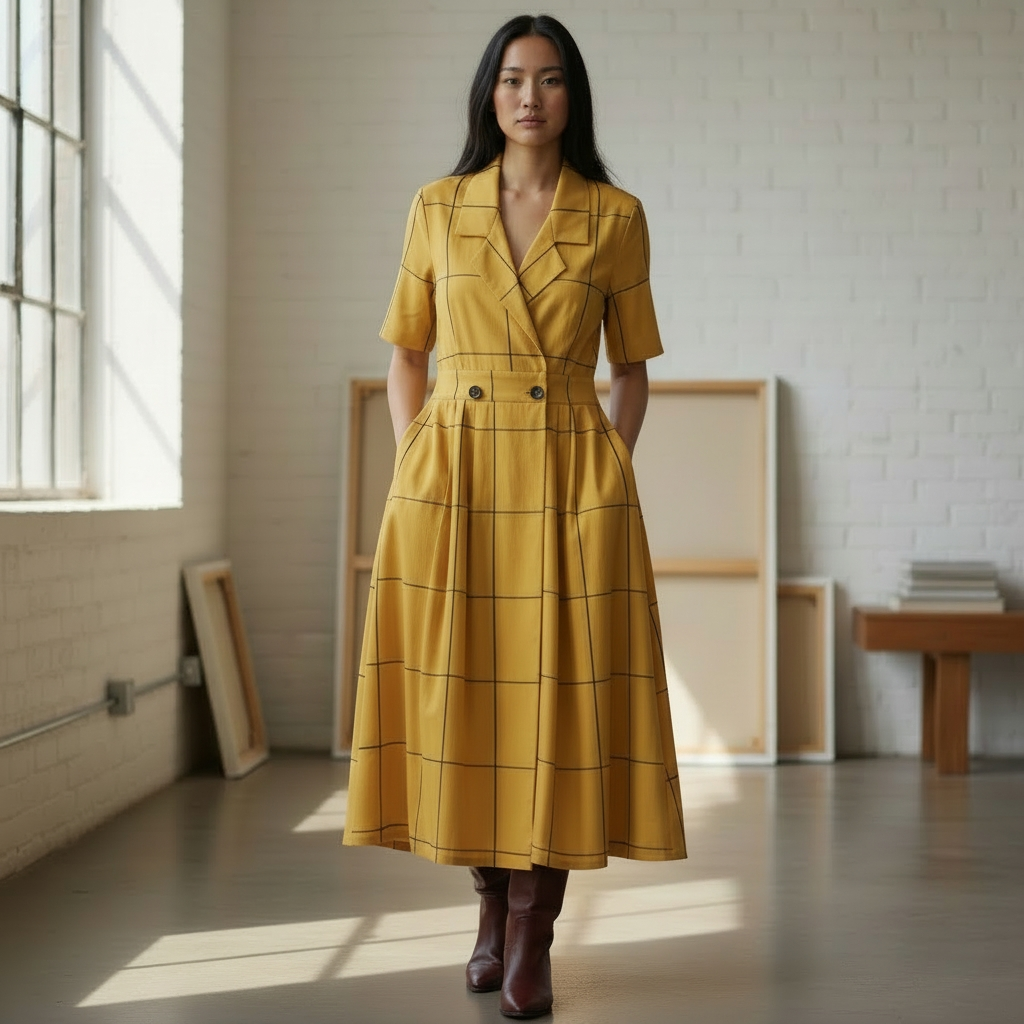 1980s Vintage Ronnie Heller Designs For Miss Bergdorf Now Plaid 100% Cotton Dress