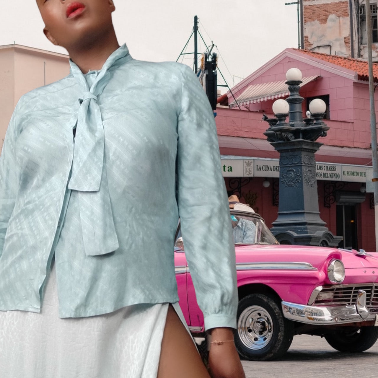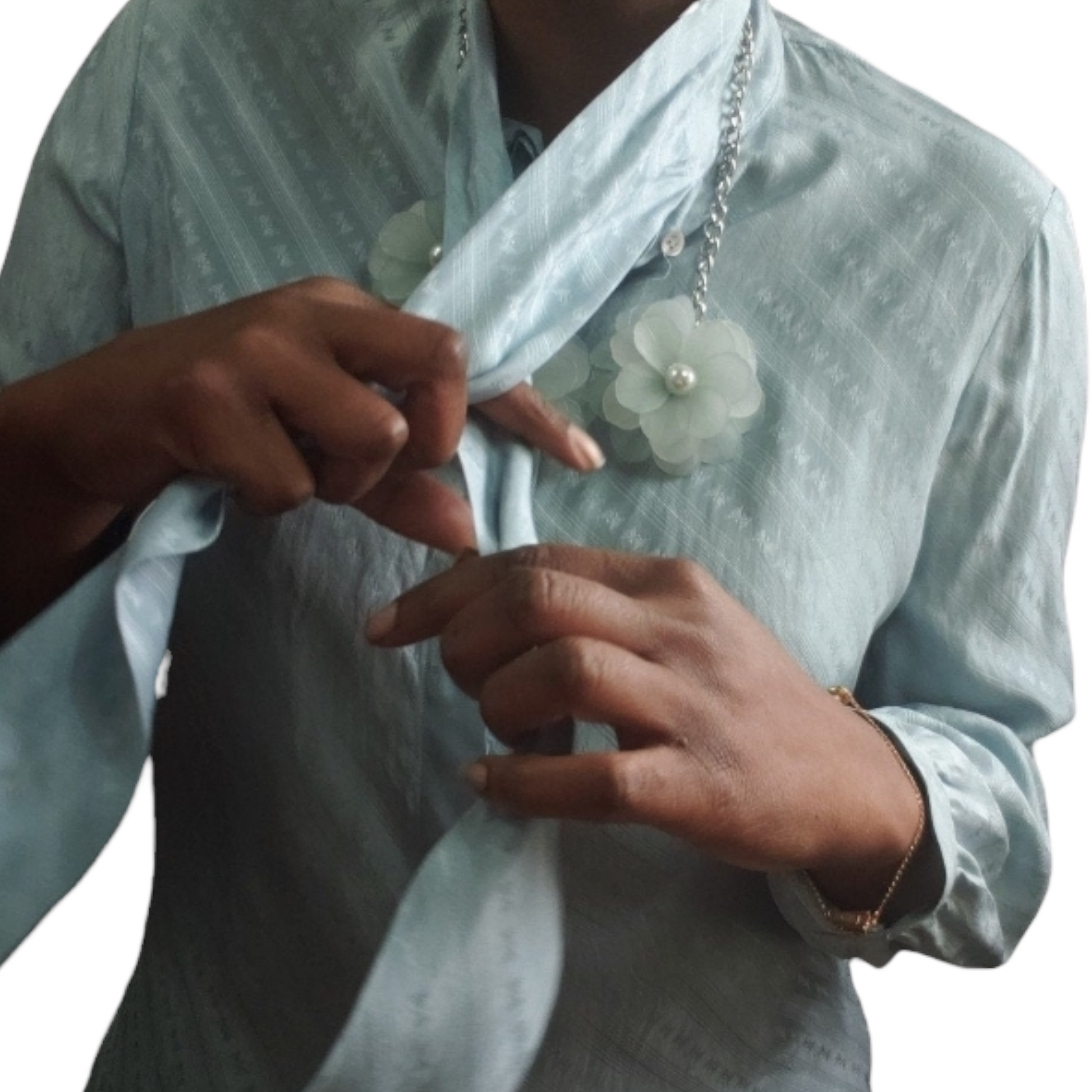 In good vintage condition, has some very small little yellowing under arm, and on the back side of the tie. See pics.