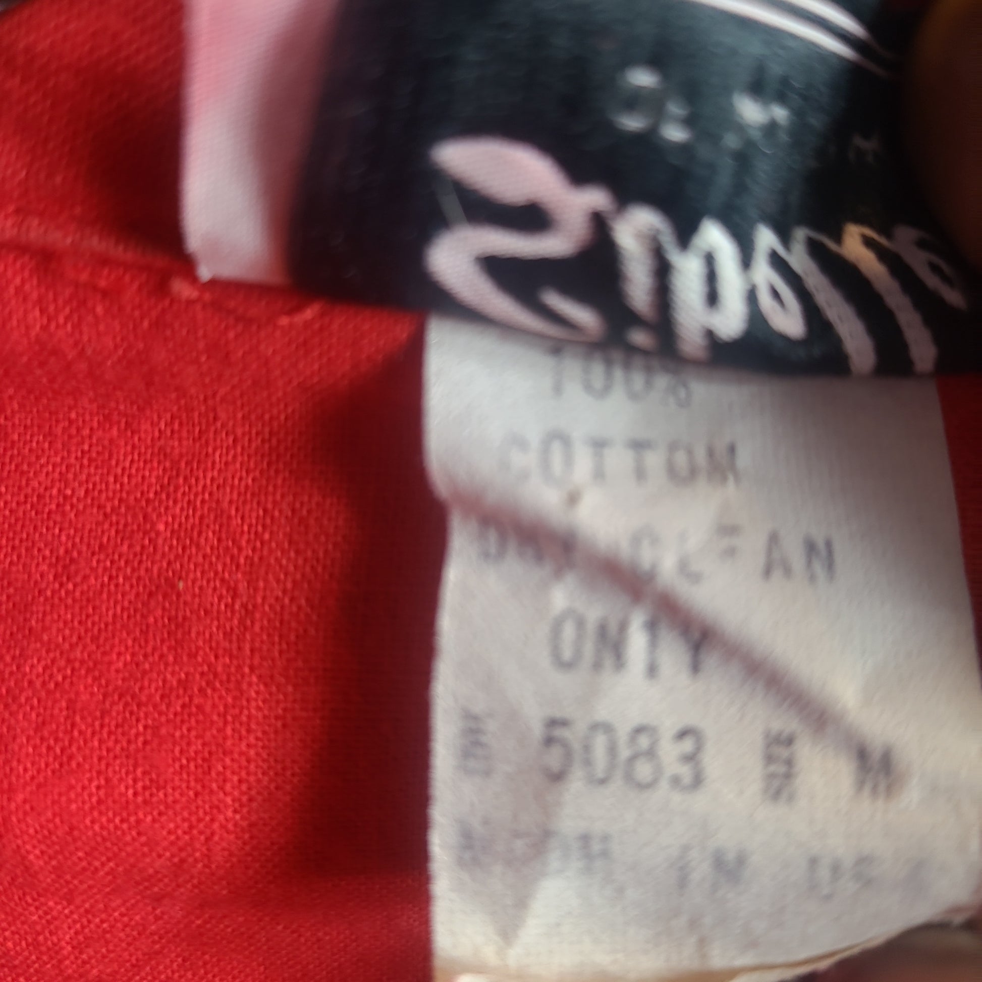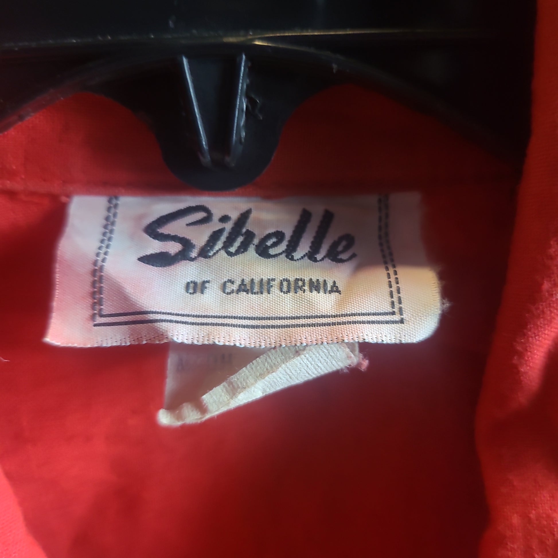 1970s red cotton, snap button western shirt. 3/4 sleeves, with yoke, and silver foil trim. In excellent vintage condition.