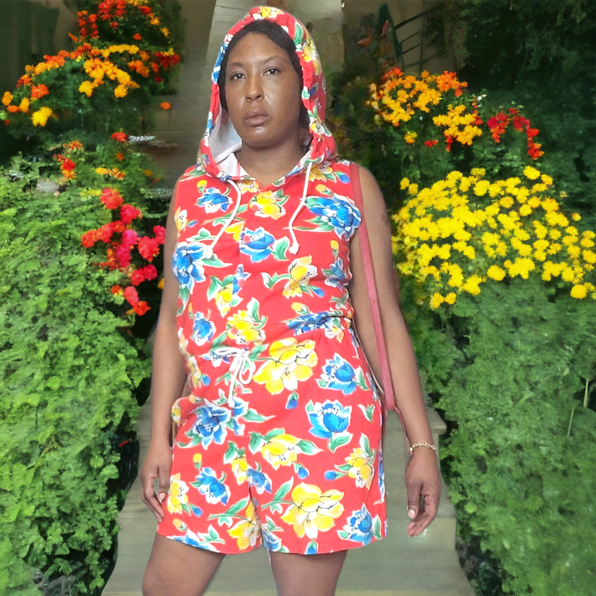 90s Vintage Adrienne Vittadini Floral Hooded Romper Size M