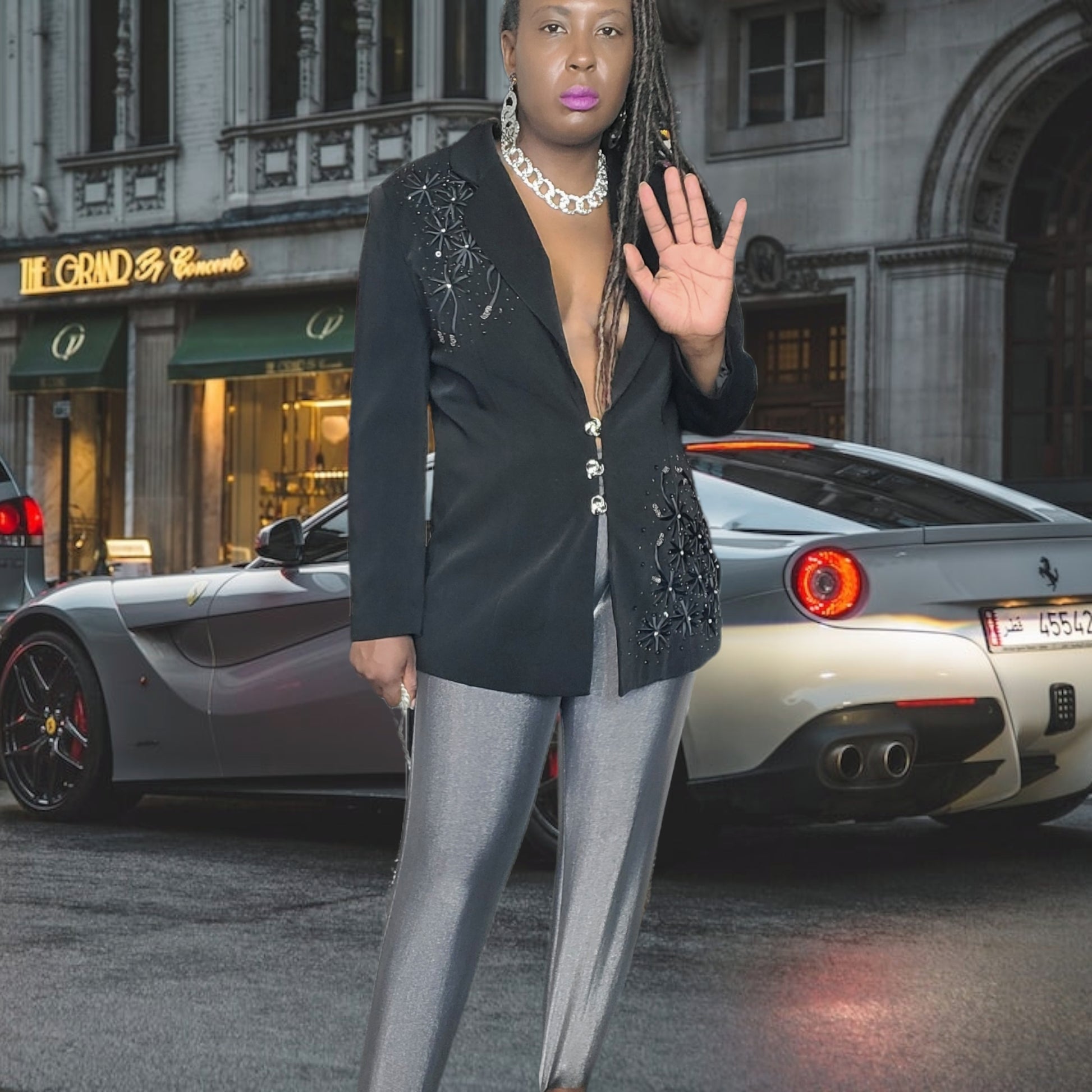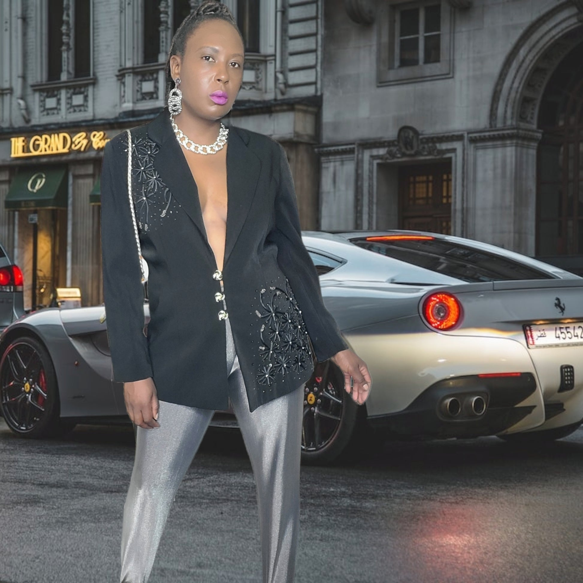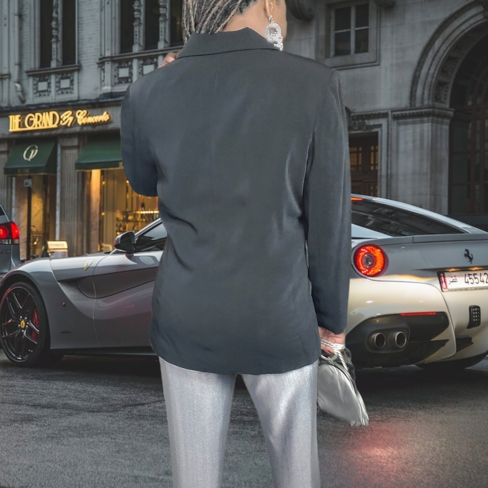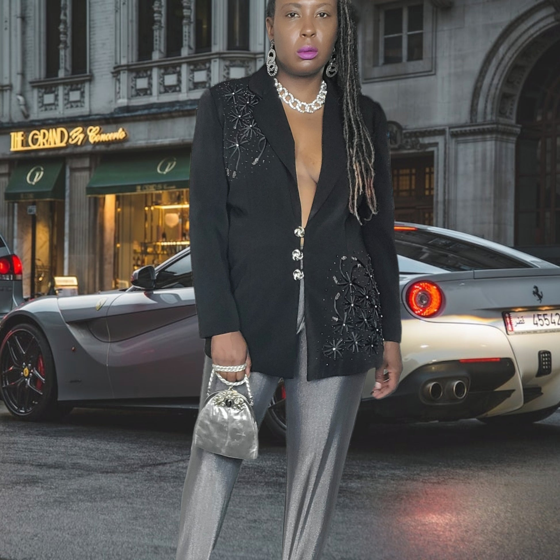 Stunning black 90s Vintage blazer! Beautifully adorned beads and floral ribbon detail, and even more beautiful buttons, and logo signed lining. In excellent vintage condition!