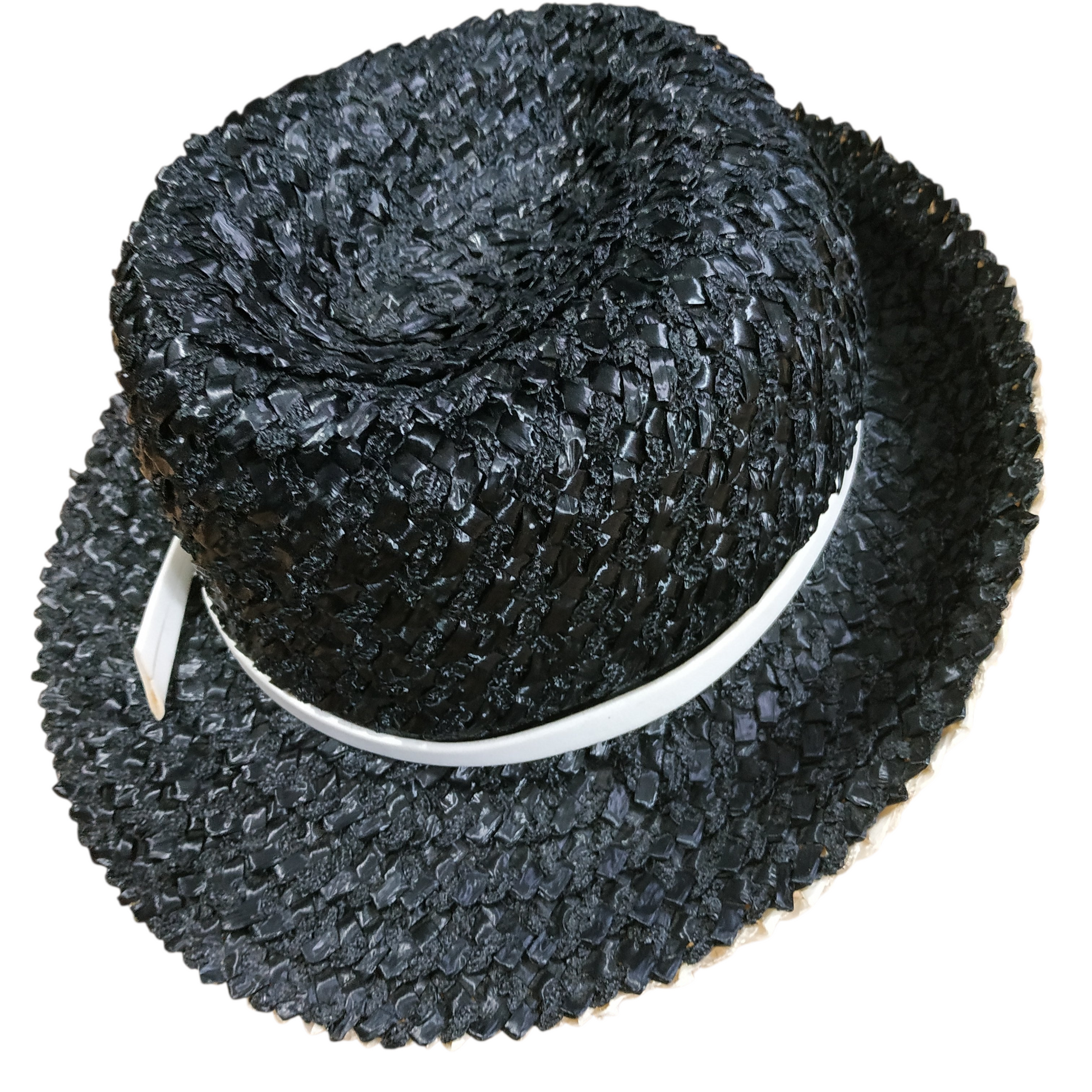 Raffia straw hat, with velvet trimmed inside rim.