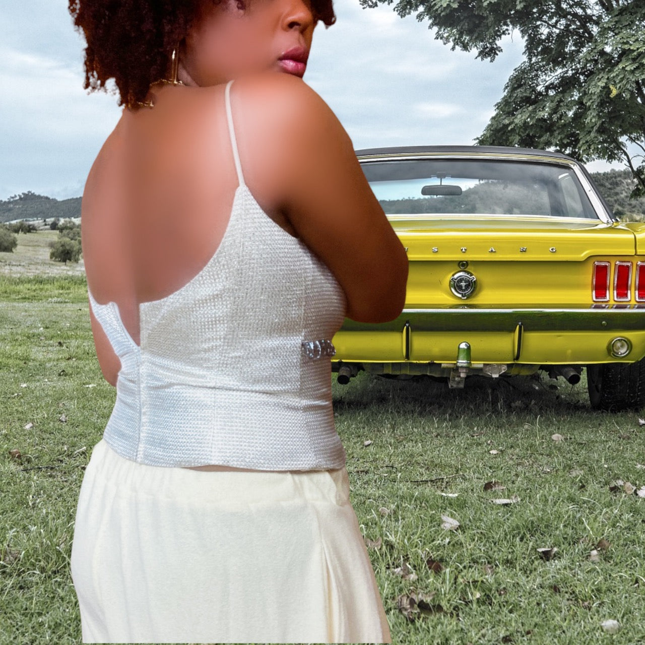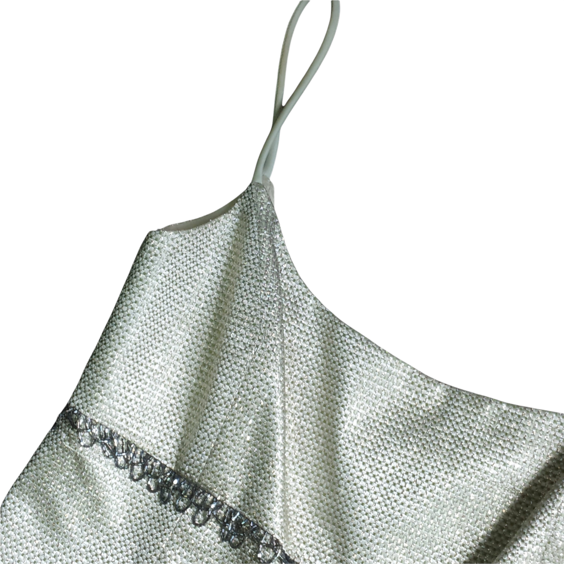Gorgeous, vintage metallic woven bodice top, with spaghetti straps, and back zip. Made for special collections, missing skirt.