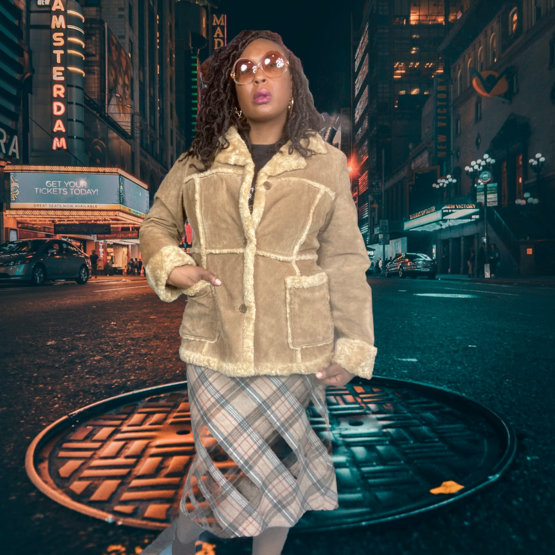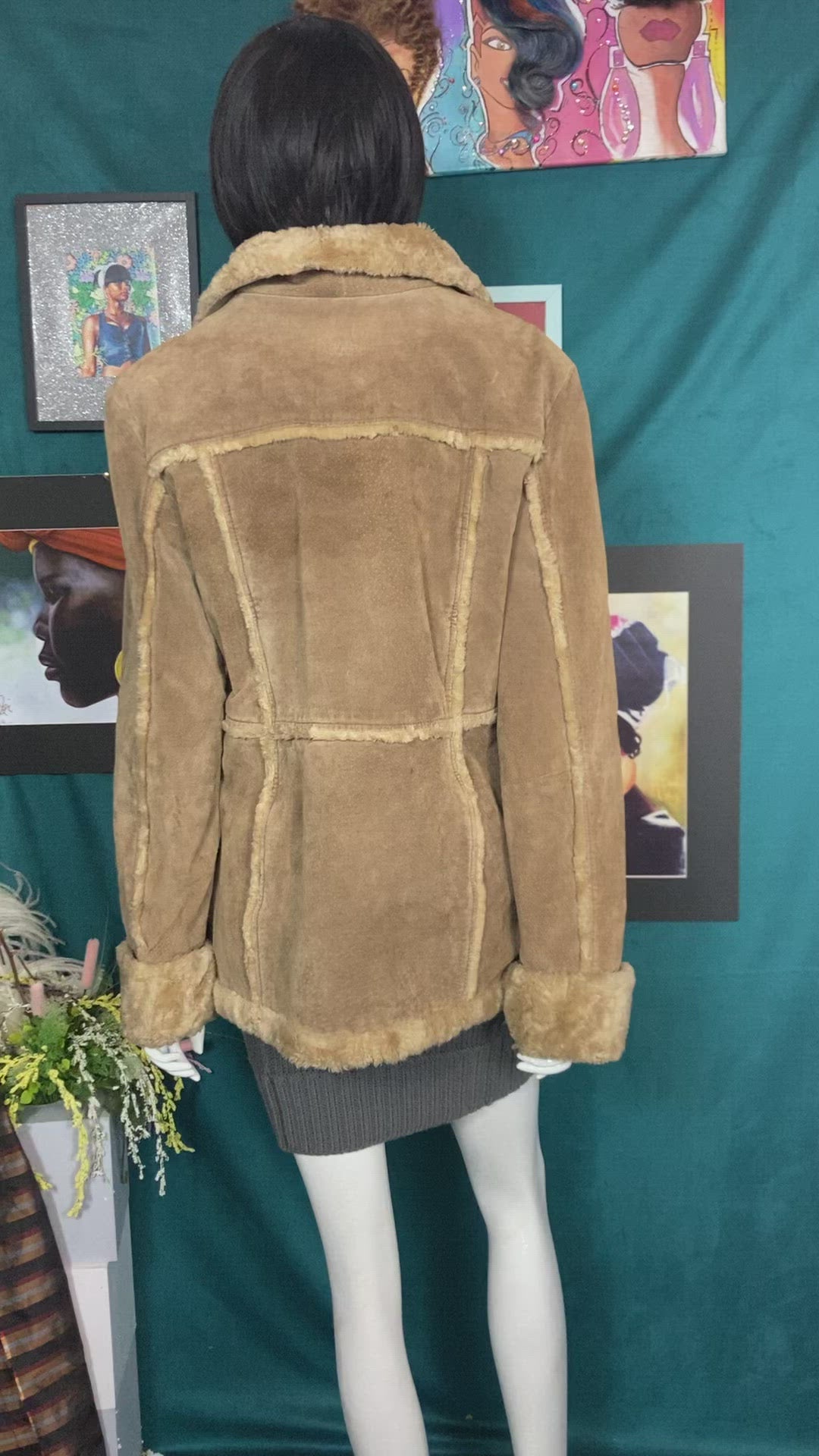 90s Tan genuine leather suede coat with faux Shearling.