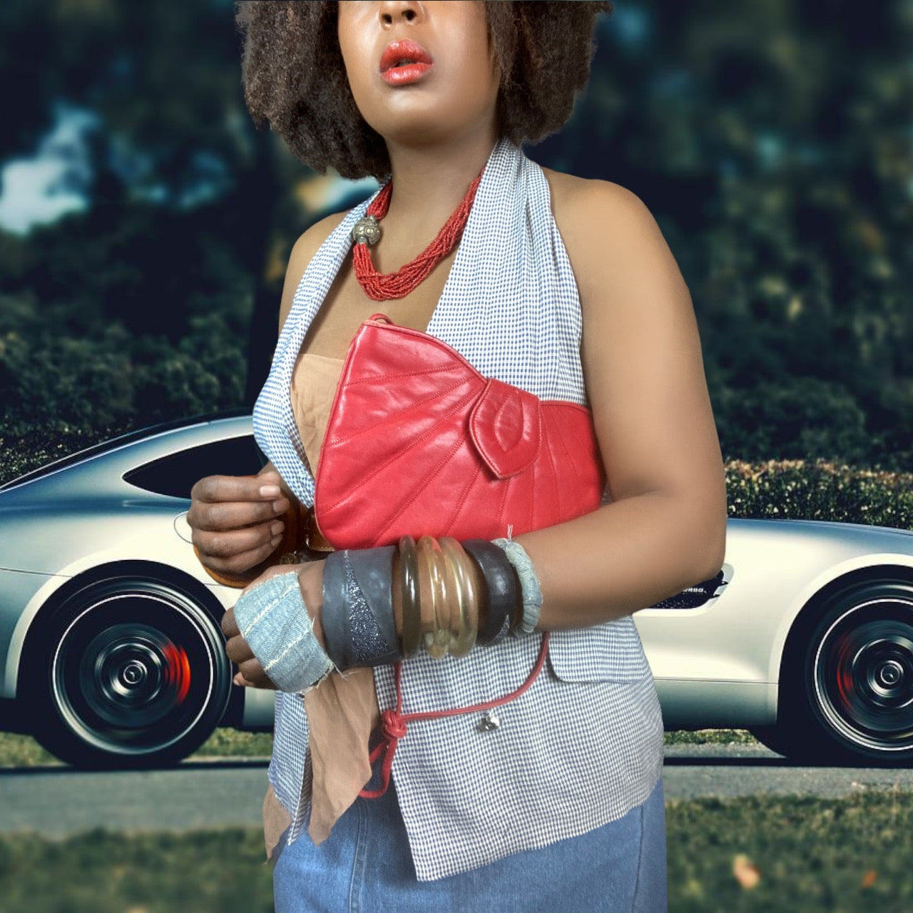 Red leather handbag, in good vintage condition. Has some ink stains on the inside, but outside is in excellent condition.