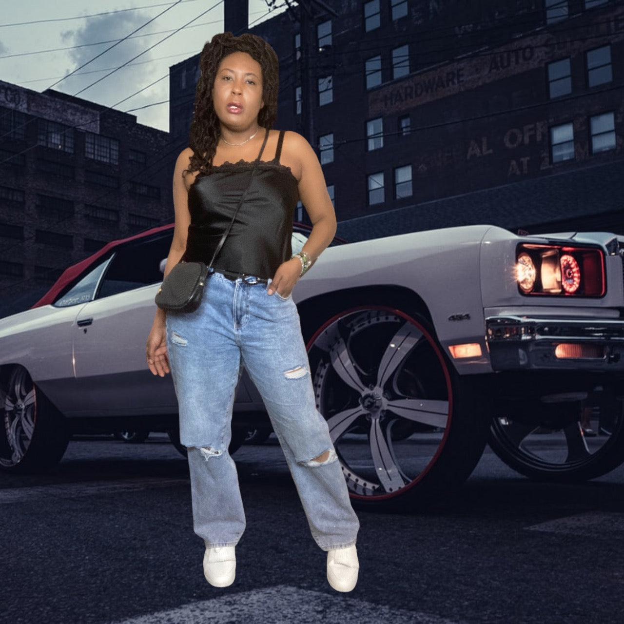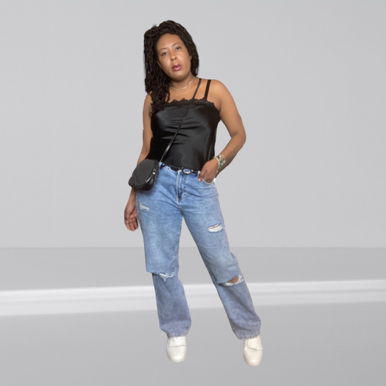 Vintage Black Lace Trim Satin Slip Top Size M