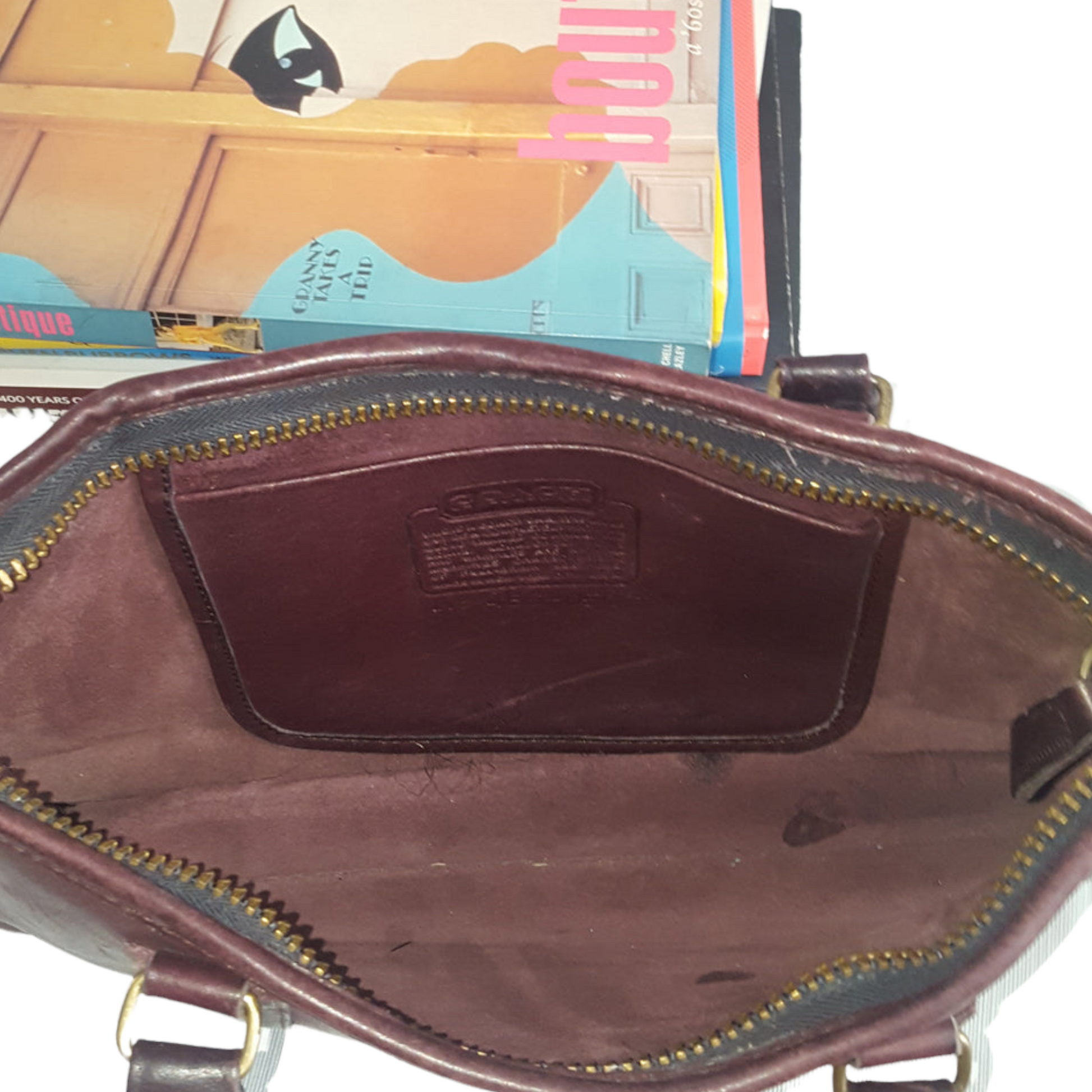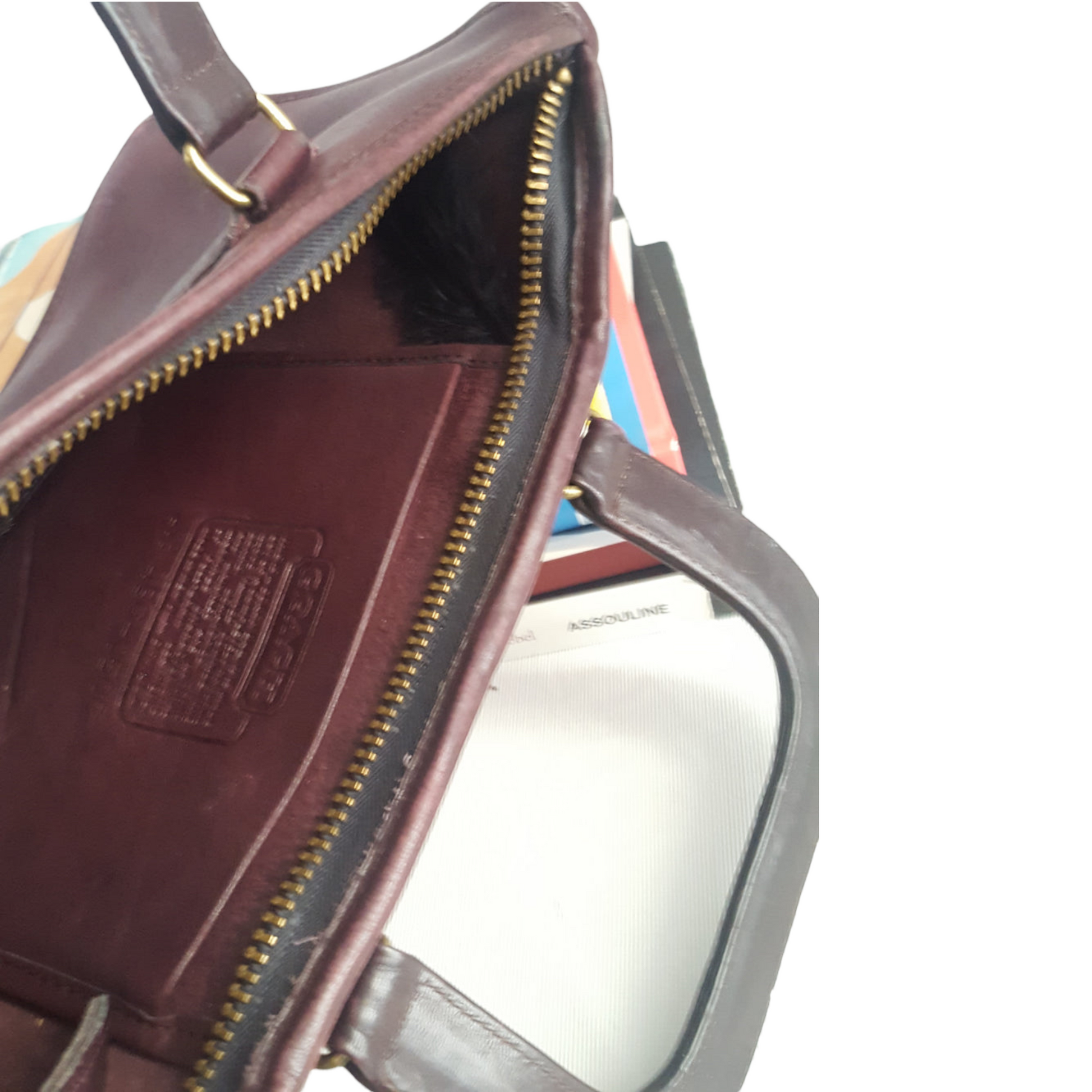 Notice the "LEATHERWARE" in tiny block letters underneath the word Coach at the top of the creed.