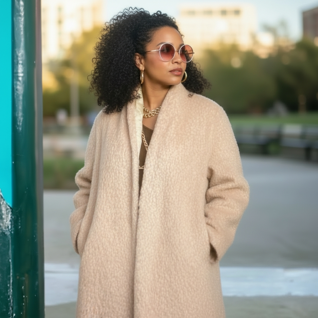 Cream wool and mohair blend furry coat. In great vintage condition.