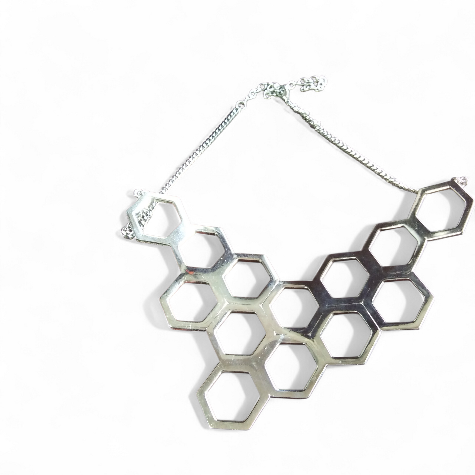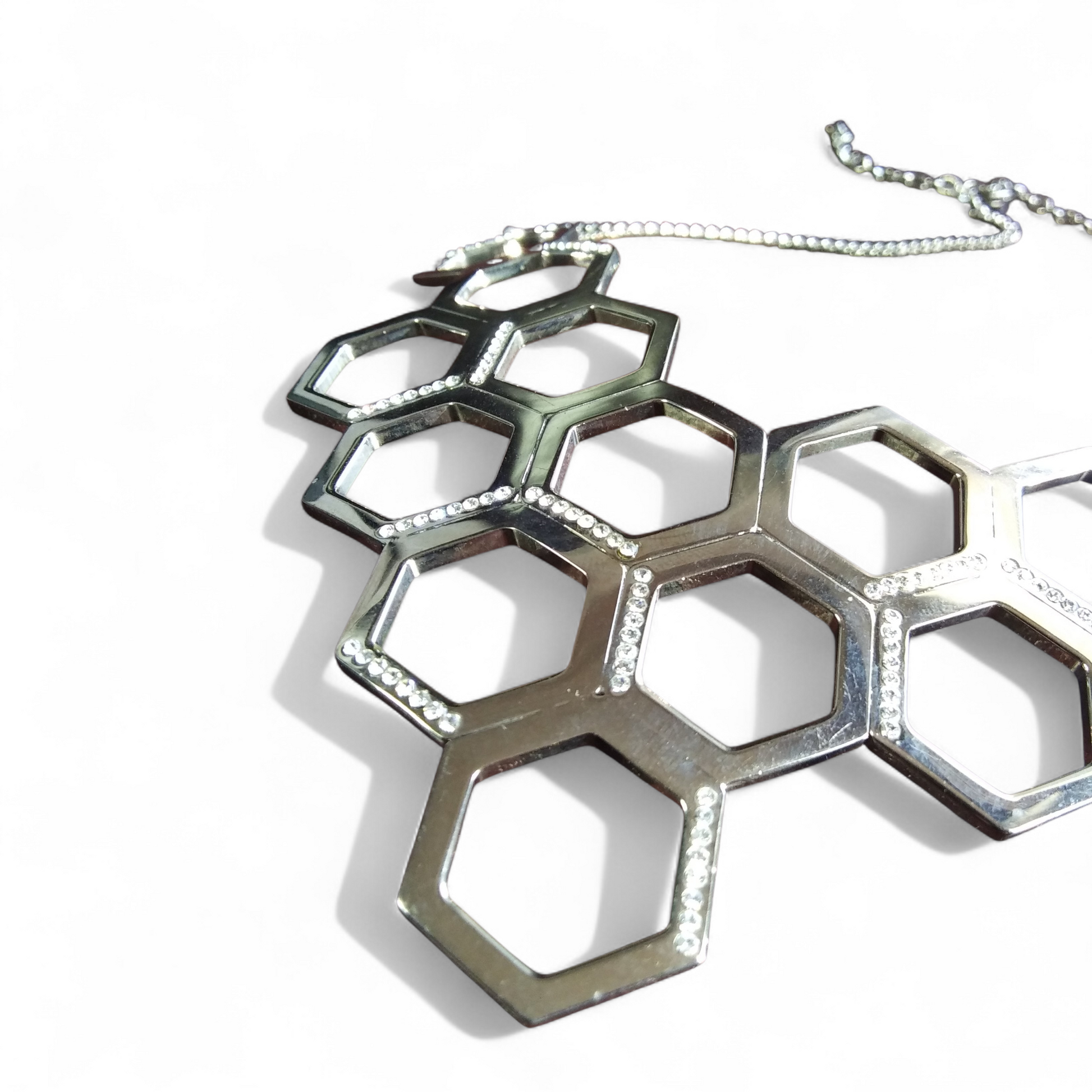 Gorgeous hexagon silver and swarvoski crystals, shaped honeycomb bib necklace.