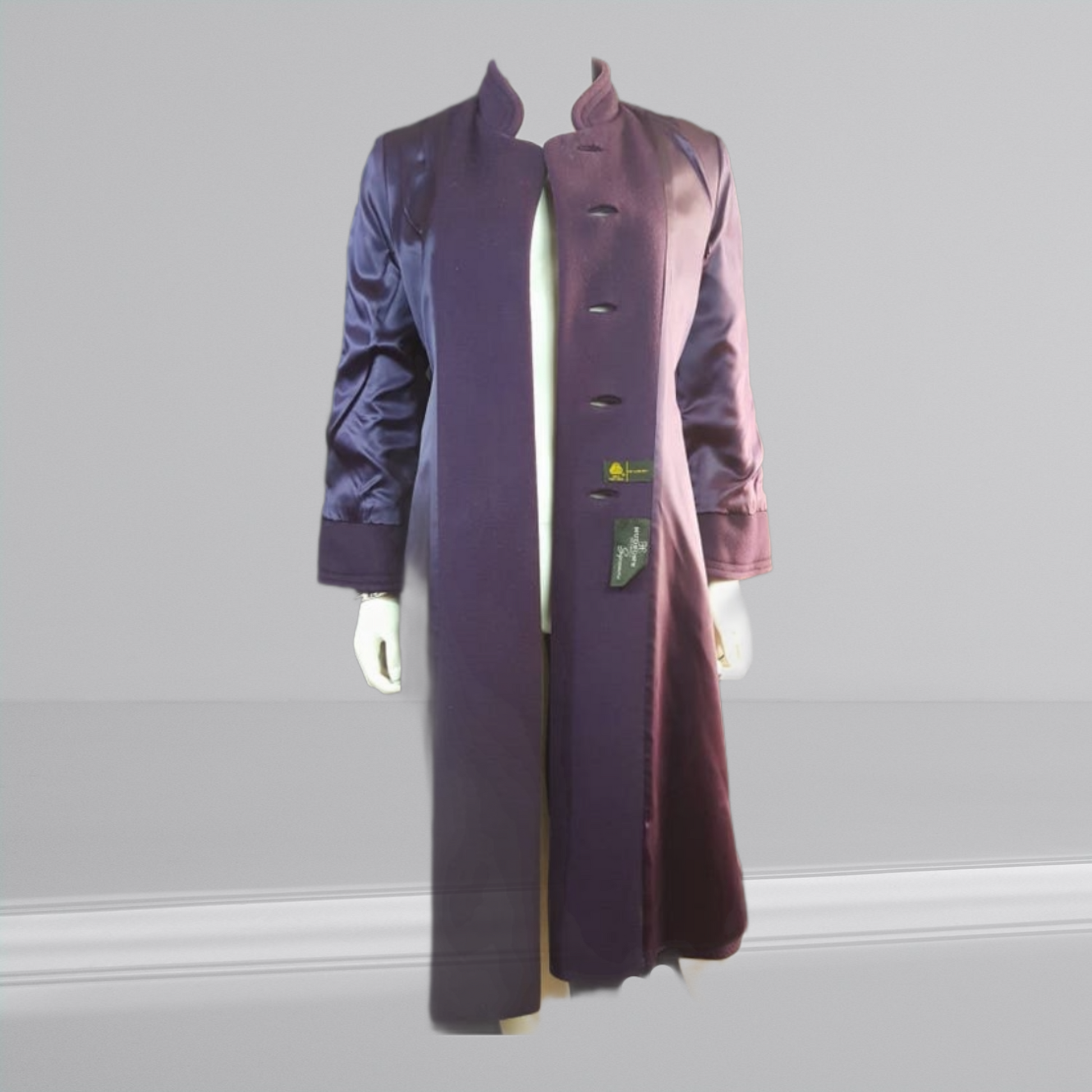 Experience absolute elegance and sheer luxury with this 1960s Hudson's Detroit Sycamore Wool Coat. This exquisite and supremely tailored luscious grape wool coat is lined with a sumptuous satin and comes in great vintage condition, with only some minor signs of wear on the outside. All the original buttons need strengthening, and the coat is made with 100% pure wool. A truly magnificent item, no winter wardrobe should be without.