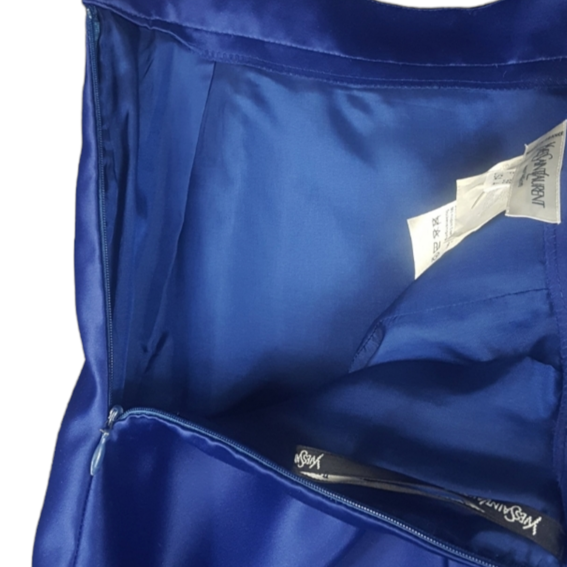 Indulge yourself in premium luxury with this iconic Circa 1990s vintage Yves Saint Laurent lux satin pencil skirt with superb quality, the timeless classic skirt boasts a royal blue hue for a striking demeanour. In pristine vintage condition.